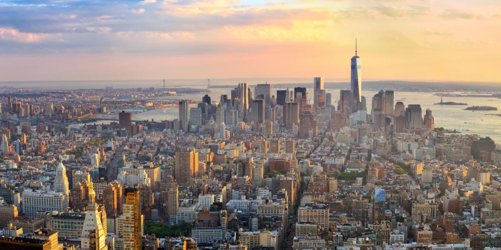 De agglomeratie van New York vormt een van de grootste stedelijke gebieden ter wereld. De stad is de dichtstbevolkte grote stad in de Verenigde Staten met meer dan 9,5 miljoen inwoners verspreid over een gebied van 789,43 km². De stad New York bestaat uit vijf boroughs of stadsdelen: The Bronx, Brooklyn, Manhattan, Queens en Staten Island. Veel monumenten en wijken van de stad zijn wereldberoemd en staan vaak symbool voor de Verenigde Staten in het algemeen. Zo zijn er het Vrijheidsbeeld, Wall Street, wolkenkrabbers zoals het Empire State Building en het Chrysler Building, het oude, in 2001 door terroristen vernietigde, World Trade Center met de Twin Towers en de opvolger hiervan, het in 2014 geopende One World Trade Center.